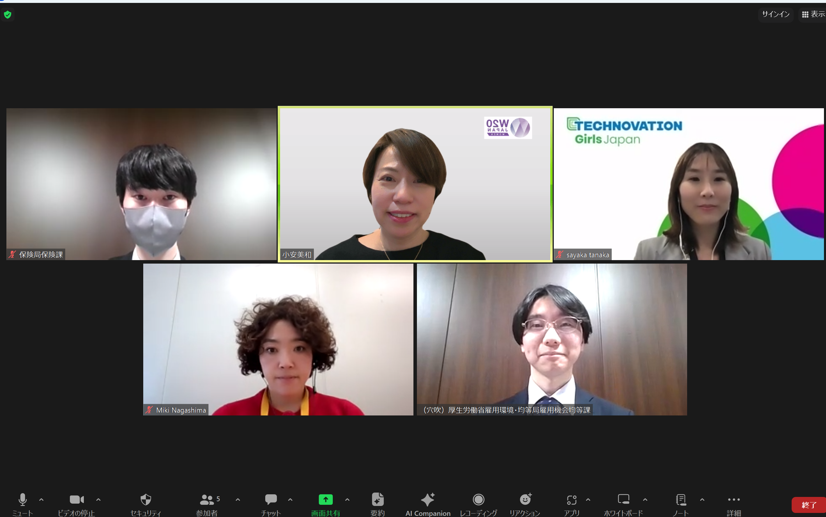 厚労省関係部署と男女賃金格差等についてオンラインで意見交換をしました